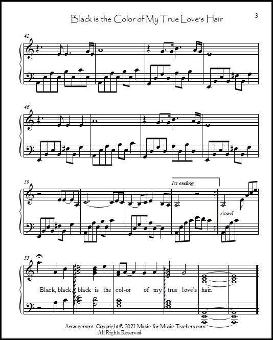 Black is the Color of My True Love's Hair sheet music is beautiful in a deep and magical way. Perhaps it is the lyrics that render it so moving.