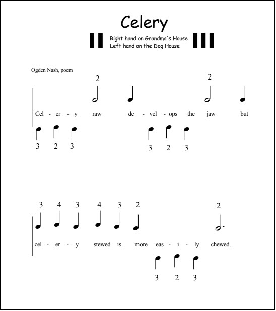 A very simple song - but with such clever words. Some of my students know the last line as "celery stewed is more QUIETLY chewed."