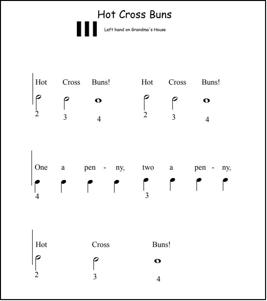 Hot Cross Buns and Pizza Please, unlike all the other songs, use just one hand: