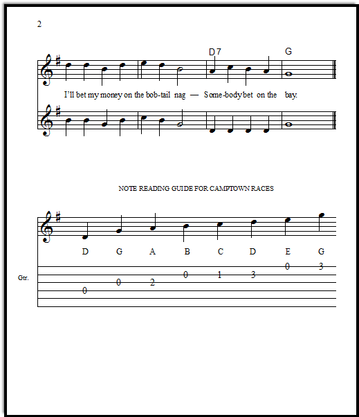 Camptown Races duet and solo for guitar or fiddle is great for guitar students who are beginning to read standard notation.