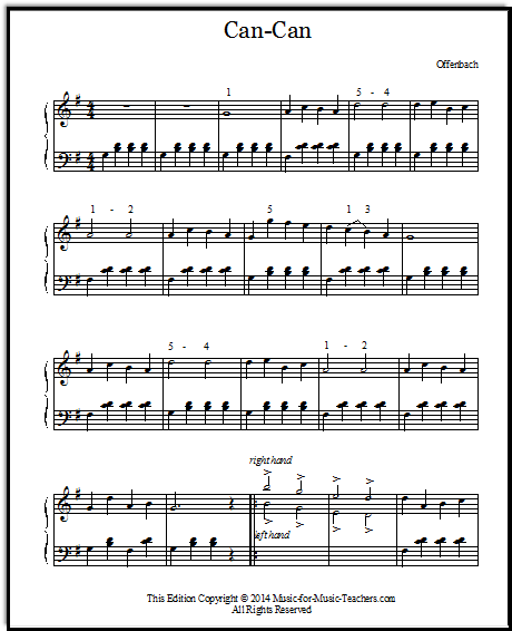 Can-Can is instantly recognizable by most people -- even by your students who don't listen to classical music at home. Three of the versions of this energetic piece by Offenbach are pretty easy to play.