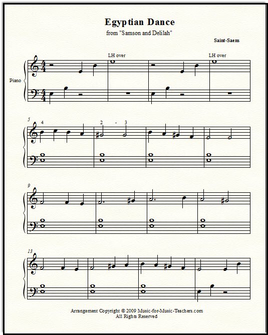 Free classical sheet music, Egyptian Dance, arranged for elementary and beginner piano... now with a LEAD SHEET arrangement!