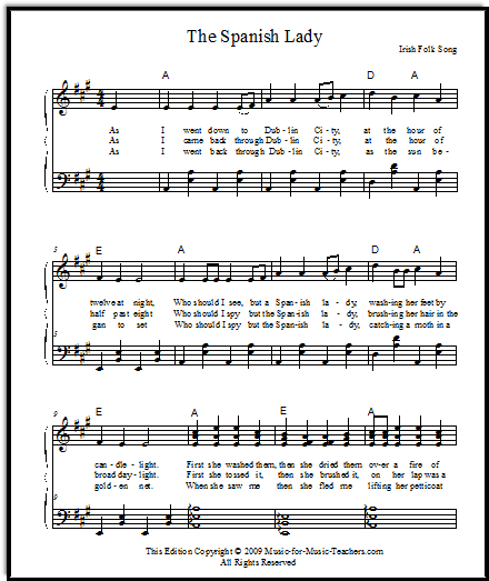 Not to be confused with Spanish LADIES, a sea chanty set in a minor key. This song, Spanish LADY, is exuberantly major!