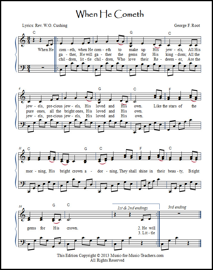 This delightful spiritual is available here free in two keys - the key of F (shown) & the key of G