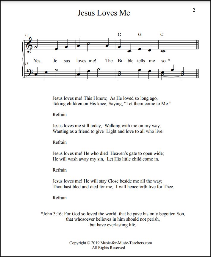 If you would like to see a fancier piano arrangement of this sweet song, check out the arrangement at my other website, SingTheBibleStory.com.