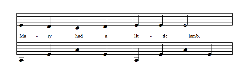 Download Mary Had a Little Lamb, with plain notes in the treble clef