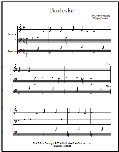 The duet parts - top line = primo, bottom line = secondo - are both very easy!